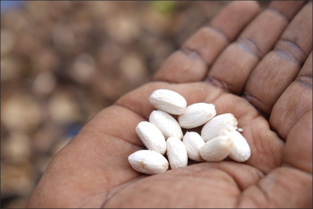 Jatropha curcas (Purgiernuss) ist ein Strauch oder ein kleiner Baum, der zur Familie der Euphorbiaceae gehört. Er ist in den tropischen Regionen Afrikas, Asiens und Lateinamerikas weit verbreitet. Seine Samen haben einen extrahierbaren Ölgehalt von etwa 35 %.